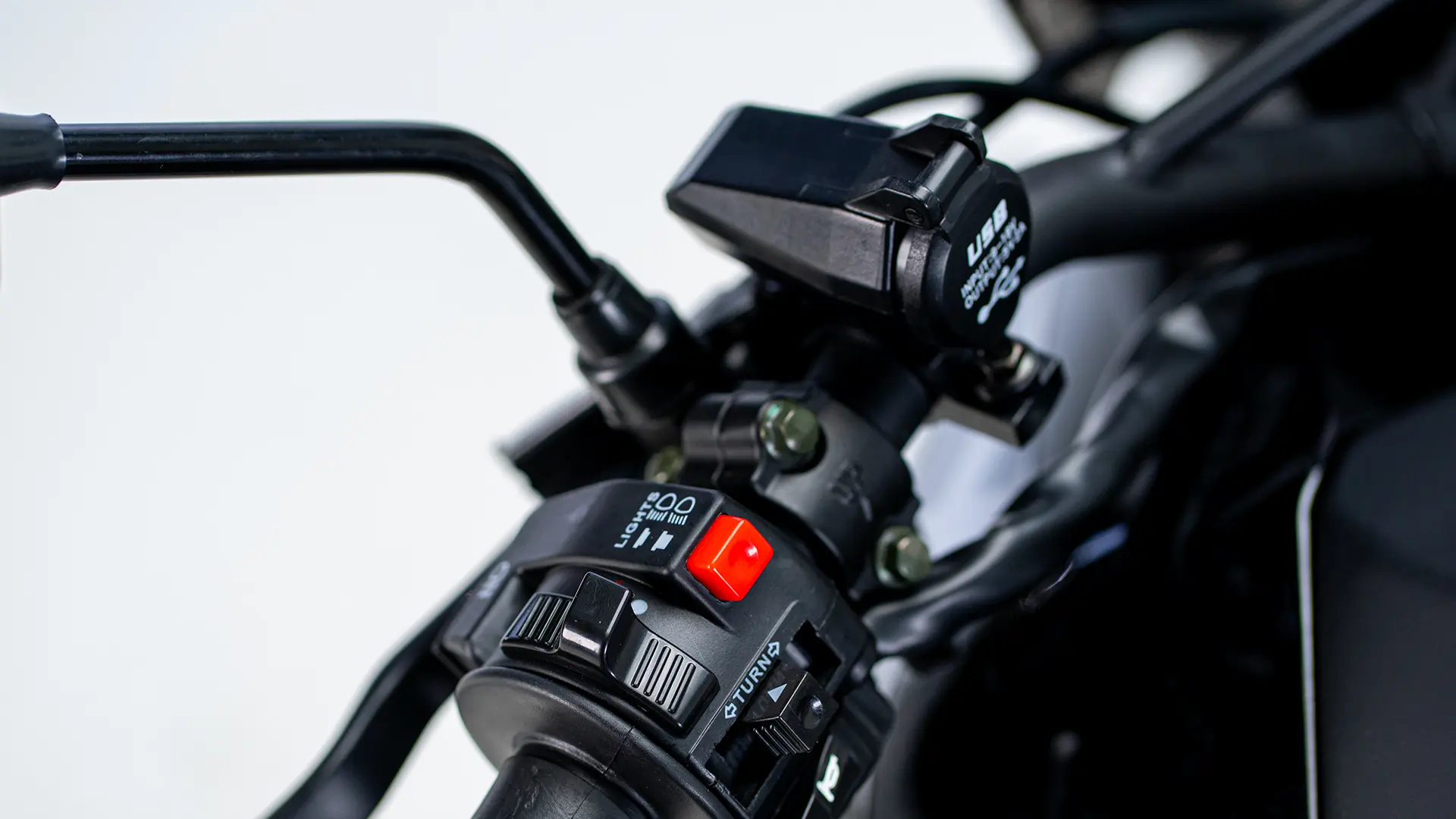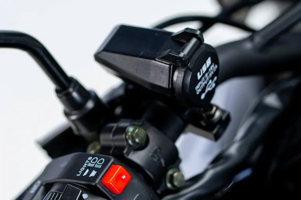 Protetor de escapamento, porta USB e descanso lateral.